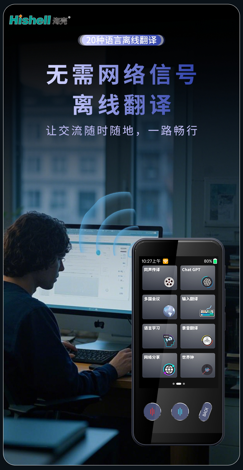 这款翻译机堪称跨语言交流的神器,核心支持20种主流语言离线翻译,无需依赖任何网络信号,让你无论身处异国他乡的偏远角落,还是信号中断的旅途之中,都能实现无障碍沟通。它操作简单,翻译精准快速,覆盖日常对话、商务洽谈、旅游出行等多种场景。告别网络束缚,带上它,就能轻松打破语言壁垒,让每一次交流都畅通无阻,开启便捷舒适的跨语言体验。