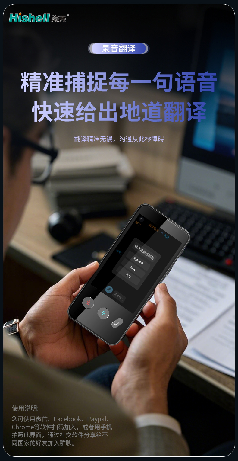 以同声传译之力,让全球交流近在咫尺。这款翻译机搭载先进同声传译技术,即刻翻译,声声同步,为你的跨语言交流全力加速。覆盖数十种主流语言及方言,无论是商务会议、国际展会,还是海外旅行、学术交流,都能实现毫秒级响应,精准传递每一处语义细节。机身轻巧便携,操作简单直观,无需复杂设置即可快速启用。打破语言壁垒,让沟通告别延迟与误解,随时随地开启流畅无阻的全球对话。