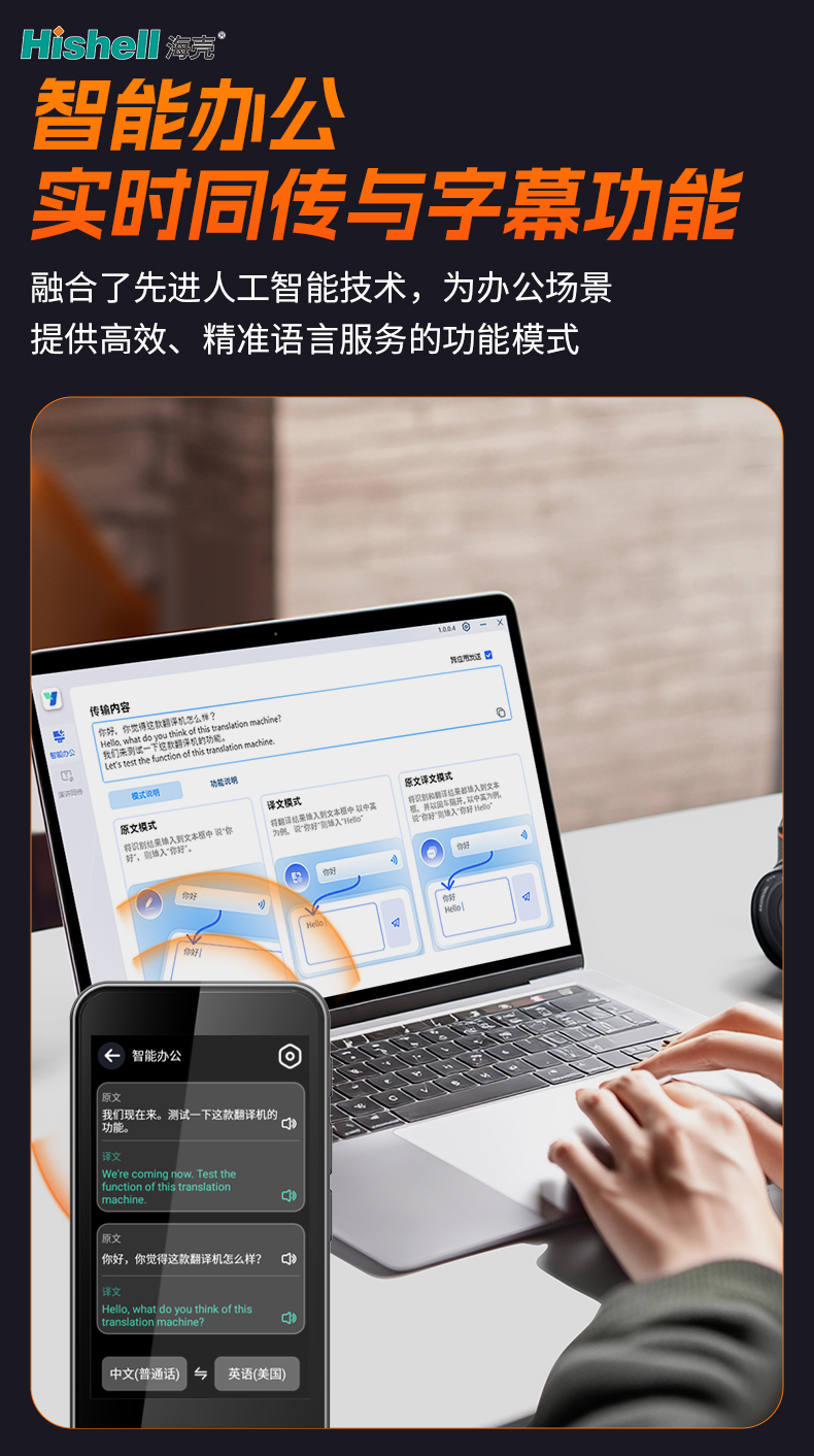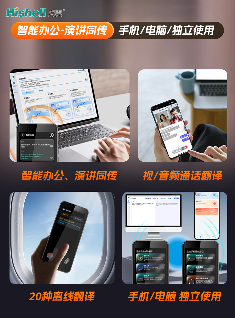 设备操作简便,无需复杂设置,快速连接即可启用,精准的翻译效果的同时兼顾实用性,轻松解决职场中跨语言演讲、会议沟通的痛点,为智能办公赋能增效。