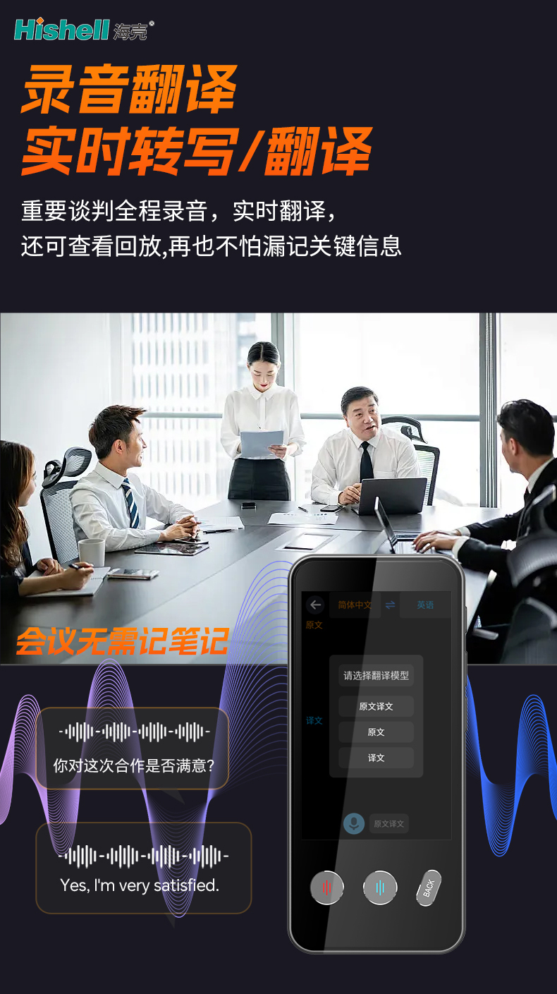 针对重要谈判场景,设备可全程录音,同步进行实时翻译,每一句关键对话都能即时转化为目标语言,避免因语言差异导致的信息误解。谈判结束后,支持全程录音与翻译内容回放,可反复查阅细节,再也不用担心漏记关键信息、遗漏谈判重点。
