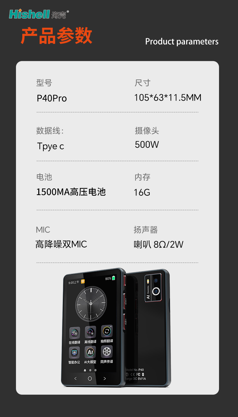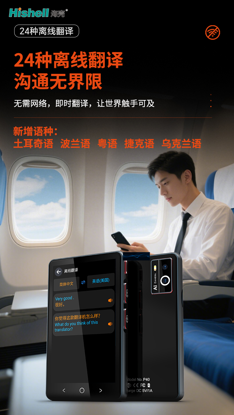 P40Pro翻译机全新升级,专为打破语言壁垒而生,让跨语言沟通更便捷高效。机身内置强大AI大模型,覆盖24种离线语种,无网络环境下也能精准翻译,出差、旅行无需担忧网络限制。支持在线翻译、离线翻译、拍照翻译多重模式,无论是纸质文档、路牌标识,还是实时对话,只需轻轻操作,即可快速转化。更搭载专业同声传译功能,适配商务会议、跨国洽谈等办公场景,精准还原发言意图。从日常交流到智能办公,P40Pro翻译机全方位满足多元需求,成为你的随身跨语言沟通神器。