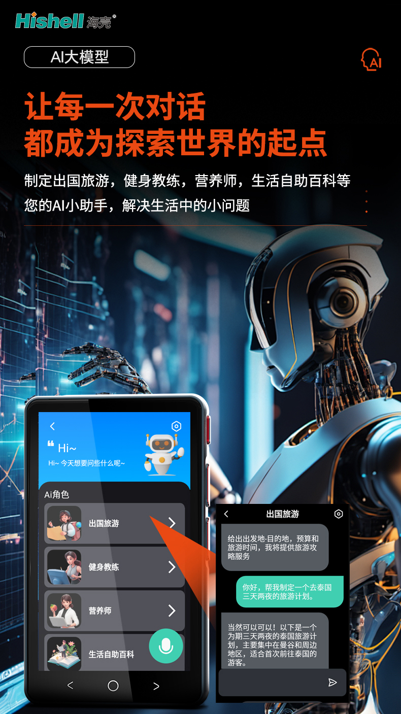 搭载前沿AI大模型,这款翻译机打破语言壁垒,让每一次对话都成为探索世界的起点。它不仅是精准高效的翻译工具,更化身你的全能AI小助手,深度覆盖多元生活场景。计划出国旅游?它能实时翻译当地语言,精准解读文化习俗,帮你轻松融入异国风情;健身路上有困惑?专业健身建议实时输出,适配你的身体状态与锻炼目标;关注饮食健康?营养师级别的膳食方案一键生成,兼顾营养与口味;遇到生活小难题?内置生活自助百科,家电维修、日常收纳等问题都能快速解答。小巧便携的设计,搭配超长续航,无论是日常交流还是远行探索,都能为你提供贴心、专业的智能支持,让生活更便捷多彩。