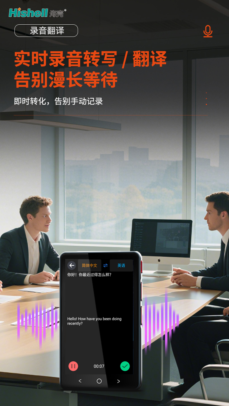 这款录音翻译机专为高效沟通设计,核心亮点在于强大的录音翻译功能。支持实时录音转写与翻译同步完成,彻底告别传统翻译的漫长等待,让跨语言交流无需延时。无论是商务会议、涉外洽谈,还是日常跨国对话,开启录音后,语音内容能即时转化为文字并呈现目标语言译文,同时省去手动记录的繁琐与误差。操作便捷,适配多场景使用,轻松打破语言壁垒,为用户带来高效、精准的翻译体验。