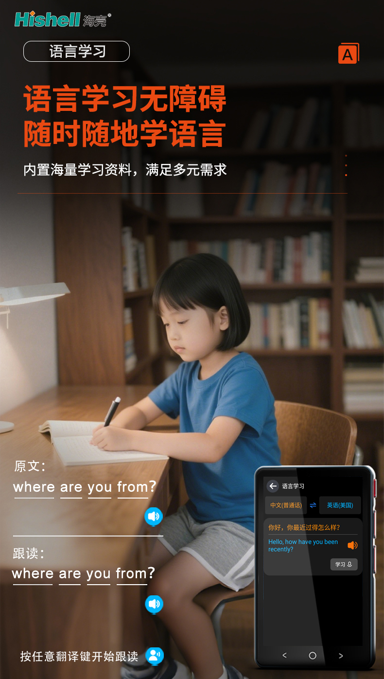 这款翻译机专为语言学习者打造,核心优势在于实现“语言学习无障碍”。无论你是通勤途中、课间休息还是居家学习,都能随时随地开启高效学习模式,无需受限于固定场景。机身内置海量优质学习资料,涵盖多语种基础词汇、常用句型、经典对话、专业主题素材等,从入门到进阶全阶段需求均能满足。不管你学习英语、日语、法语等热门语种,还是小众语种,都能在这里找到适配资源,轻松攻克语言学习难关,助力快速提升语言能力。