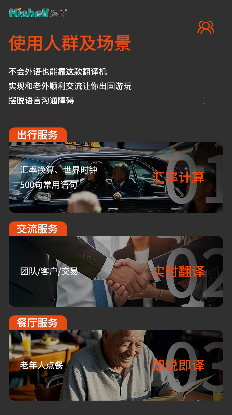 这款翻译机专为无外语基础人群打造,是出国游玩的必备沟通神器,轻松帮你摆脱语言障碍。无论是出行时向当地路人问路、与出租车司机沟通目的地,还是办理酒店入住等出行服务场景;在餐厅点餐时询问菜品详情、与服务员沟通口味需求的餐厅服务场景;亦或是结识外国友人后日常闲聊的交流服务场景,它都能胜任。只需简单操作,说话秒出翻译结果,音质清晰、语义精准,让你与老外交流顺畅无阻,尽情享受出国的乐趣。