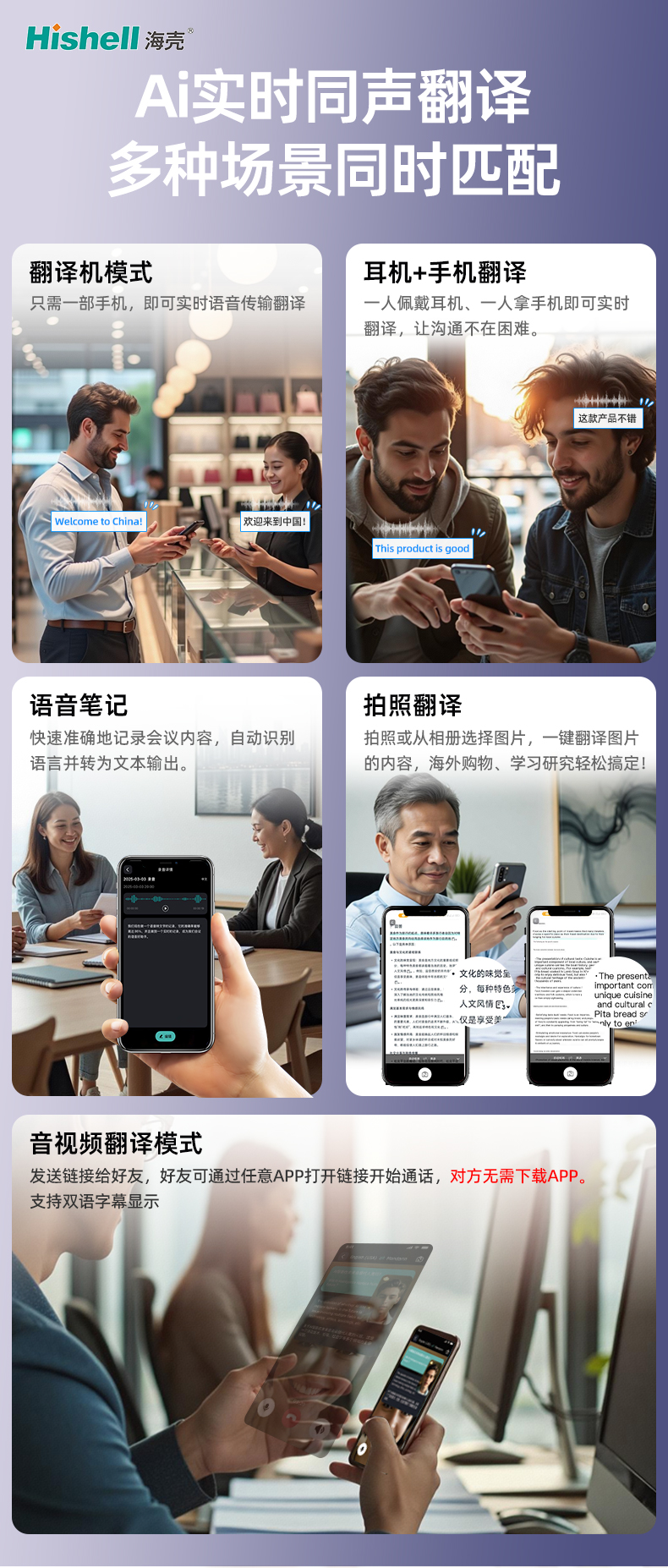 耳机本身兼顾佩戴舒适度与高清音质,降噪效果出众,跨境通话音质清晰无杂音,小巧便携易携带,是跨境社交、海外工作、跨国亲友联络的必备神器,让语言不再成为沟通的阻碍。