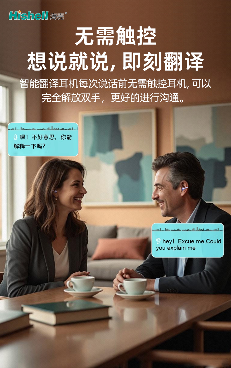 区别于普通翻译耳机需要反复触控唤醒的繁琐操作,它内置高精度智能语音识别模块,无需提前点击耳机按键、无需暂停对话手动唤醒,开口即自动捕捉语音信号,实时完成翻译转换,响应速度快至毫秒级,对话流畅度堪比母语交流。不管是外出旅游问路、海外商务洽谈,还是跨境交友、异国留学日常沟通,都能摆脱手部操作束缚,不用分心摆弄设备,全身心投入对话本身。
