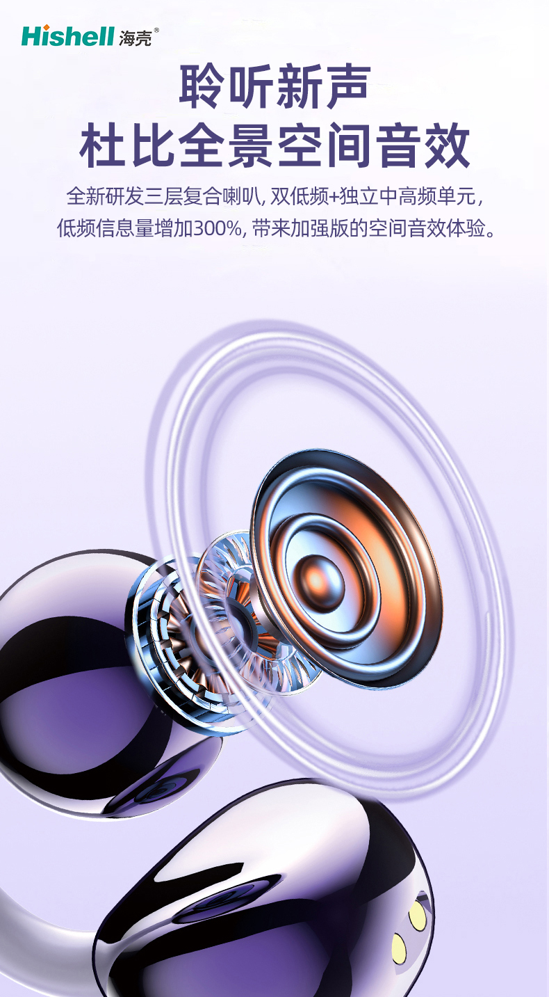 音质方面搭载全新研发的三层复合喇叭,采用双低频搭配独立中高频单元的专业声学结构,彻底优化音频解析能力,低频信息量直接提升300%,下潜更深、回弹更稳,中高频通透清亮、人声细腻饱满,彻底告别音质单薄、声场狭窄的问题。依托杜比全景空间音效技术,全方位还原声音层次,无论是影音观影、音乐聆听,还是日常通话,都能感受到立体环绕的加强版空间音效,仿佛置身原声现场,听觉体验全面升级。