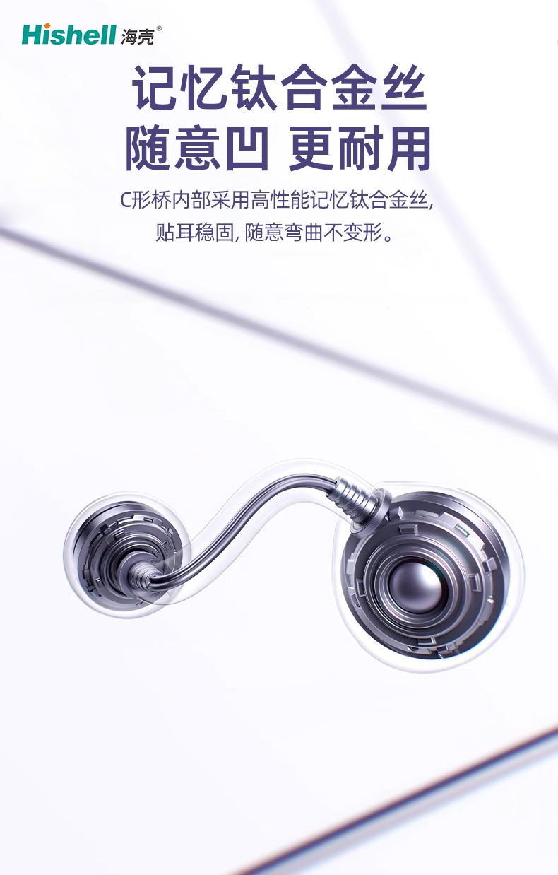 佩戴耐用性方面,耳机采用C形桥内置高性能记忆钛合金丝核心设计,彻底解决传统耳机易变形、佩戴易滑落的痛点。记忆钛合金材质具备超强回弹与抗弯折特性,可随意凹折调整弧度,反复弯曲也不会出现金属疲劳、变形断裂的情况,耐用性远超普通塑料与普通金属支架。C形贴合耳背的工学设计,搭配柔性材质包裹,佩戴时稳固贴合耳廓,运动、行走、长时间交谈都不会松动脱落,兼顾牢固度与佩戴舒适度,久戴无压耳感。