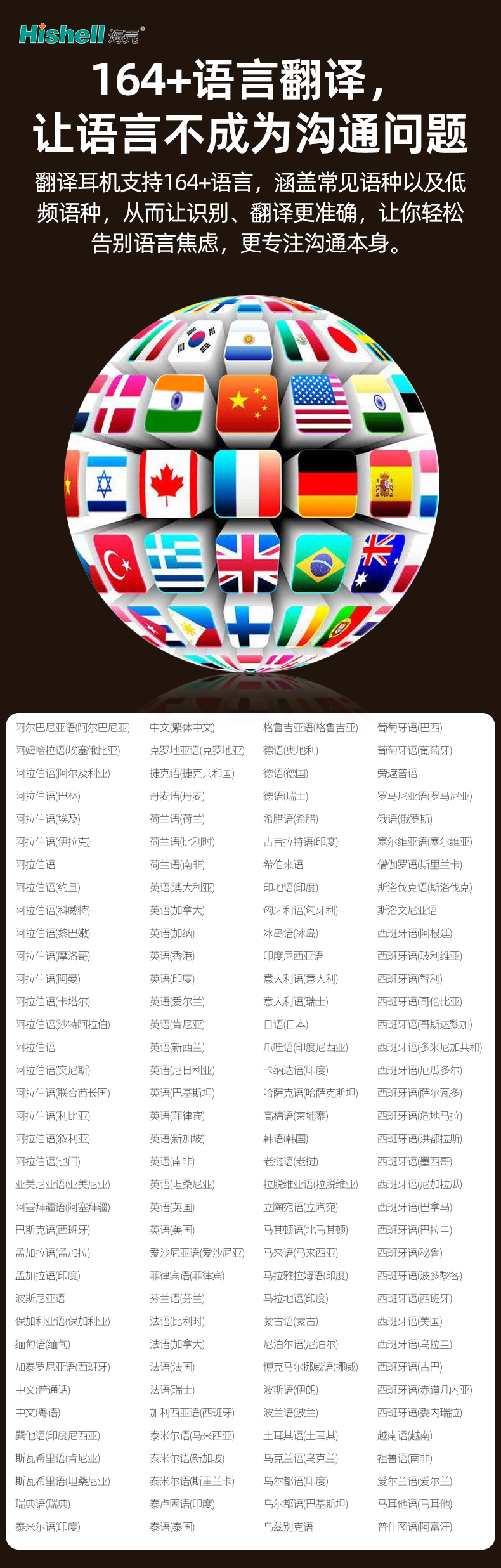 产品名称:蓝牙翻译耳机 翻译语言数:164+语言互译