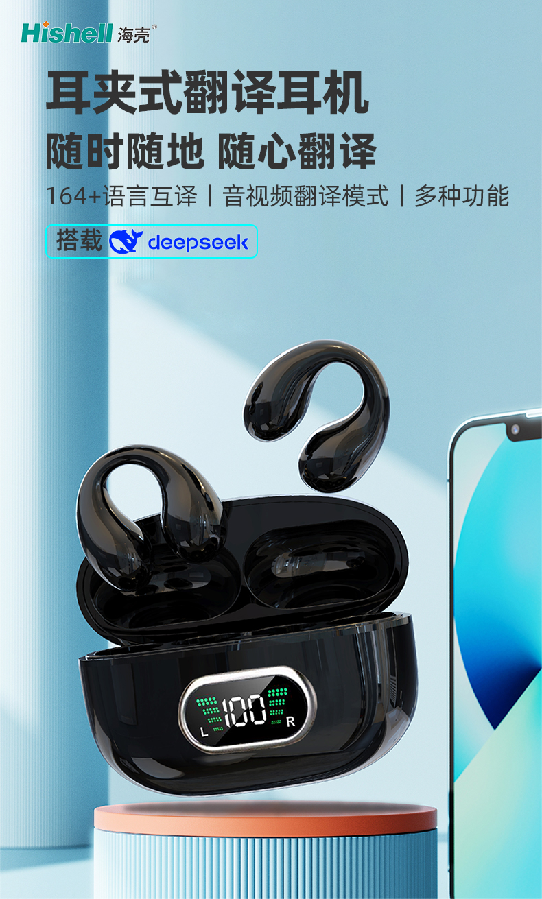 这款耳夹式翻译耳机,以创新力学耳夹设计实现轻若无物的佩戴体验,无需入耳更舒适,运动、通勤皆稳固。真正做到随时随地随心翻译,堪称跨语言沟通神器。搭载DeepSeek先进技术,翻译精准度与响应速度双优,支持164+种语言互译,覆盖主流语种与小众方言,轻松打破语言壁垒。内置音视频翻译模式,线上跨国会议、外文影视观看都能实时转译。更兼具语音识别、多设备兼容等多种实用功能,无论是商务洽谈、海外旅行还是跨境学习,都能让沟通零障碍,为你开启高效便捷的全球交流新体验。