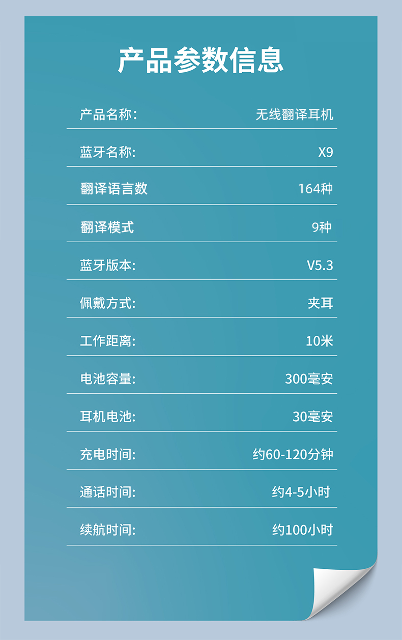 产品名称:无线翻译耳机 蓝牙名称:X9