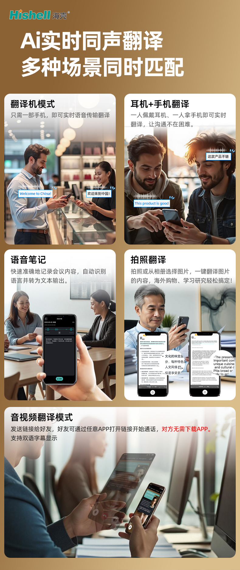 无论是跨国会议、境外旅行,还是日常跨语言交流,它都能完美解放你的双手——让你在手持资料、驾驶车辆或处理事务时,无需分心操作,就能流畅沟通。轻便的设计搭配高效翻译算法,兼顾舒适感与实用性,成为跨语言场景下的必备好物。