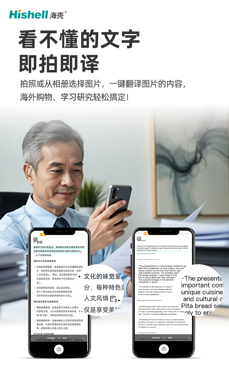 内置语音笔记功能,能快速准确记录会议、讲座内容,自动识别语言并转为文本输出,大幅提升工作学习效率。配备拍照翻译功能,拍照或从相册选取图片,一键即可翻译图片中的文字,海外购物看说明、学习研究查资料都能轻松搞定。