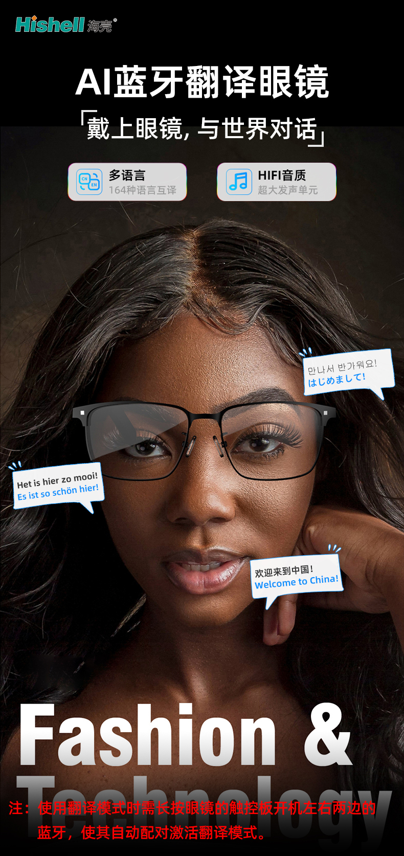 AI蓝牙翻译眼镜,让沟通打破语言壁垒,戴上它便能轻松与世界对话。这款集科技与实用的眼镜,支持164种多语言实时互译,无论是商务洽谈中的专业表述,还是旅行途中的日常交流,都能精准传递语义,告别沟通障碍。内置HIFI音质超大发声单元,声音清晰饱满,搭配蓝牙快速连接,无需繁琐操作。轻盈的镜架设计贴合舒适,兼顾日常佩戴需求,让你在跨语言场景中,既保持从容姿态,又能享受流畅、高品质的沟通体验。
