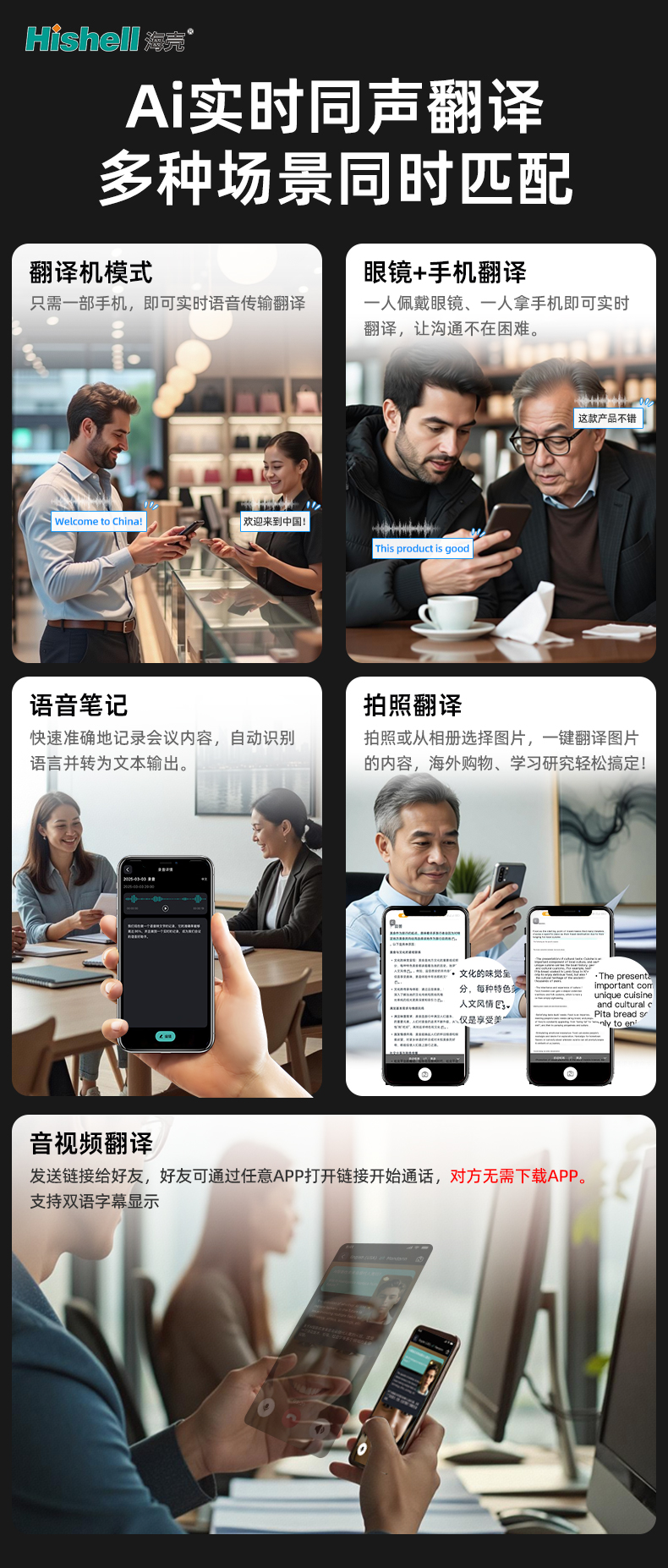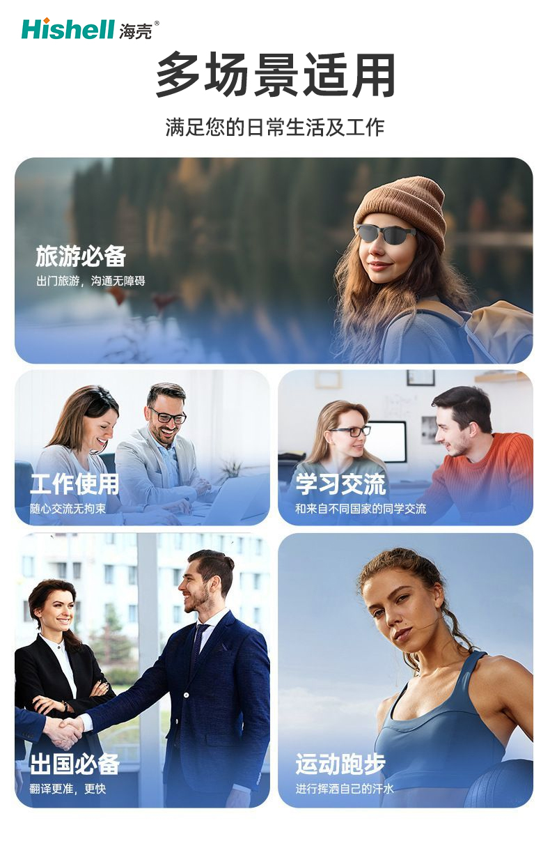 这款智能翻译眼镜堪称多场景神器,全方位满足你的生活与工作需求。出门旅游时戴上它,外语交流零障碍,无论是问路点餐还是深入当地文化,都能轻松应对。工作中与外籍客户沟通,它实时精准翻译,让交流随心无拘束。和异国同学学习互动,它搭建起顺畅的语言桥梁,思想碰撞更自由。作为出国必备品,它翻译更快更准,帮你快速融入当地环境。即便运动跑步挥洒汗水,轻便的它也能稳定工作,让你在活力时刻也不担心语言问题,为你的每段旅程与日常保驾护航。
