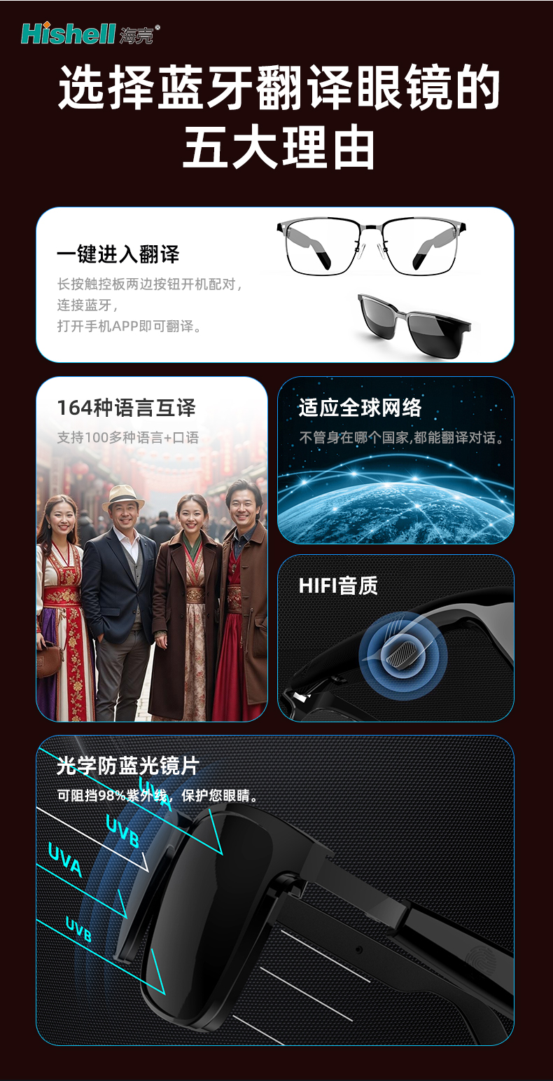 它支持164种语言实时互译,小语种沟通也从容。适配全球网络,无论身处哪个国家,都能稳定翻译对话。搭配高品质FIFI音质,听觉清晰自然。光学防蓝光镜片更能阻挡98%紫外线,沟通同时贴心守护你的双眼,工作、旅行都实用。