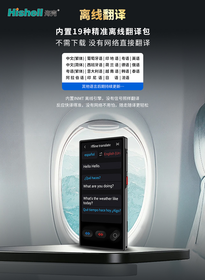 这款翻译机的离线翻译功能,彻底解决无网场景的语言难题。内置 19 种精准离线翻译包,无需额外下载,没有网络也能直接翻译,出门在外无需担心流量或信号问题。