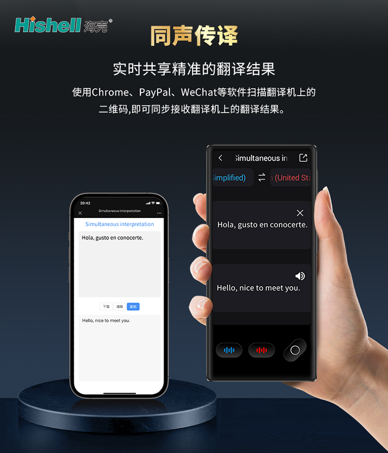在使用时,无需复杂连接,只需通过 Chrome 浏览器、PayPal、WeChat 等常用软件,扫描翻译机上的专属二维码,就能同步接收实时翻译内容。不管是国际会议中参会者同步获取译文,还是商务谈判时团队共享沟通信息,都能避免漏听、误解,确保每一句交流都清晰准确。即使多人分散在不同位置,也能通过各自设备便捷查看,彻底打破跨语言沟通的时空限制,适配各类正式或非正式交流场景。