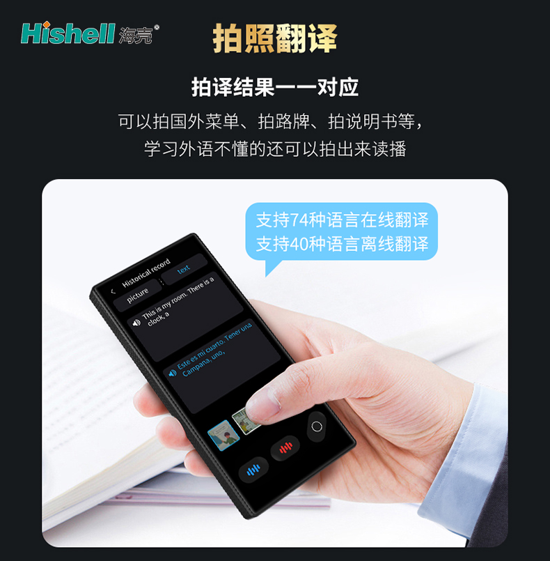 支持多点触摸可视化操作,指尖轻触即可切换翻译语种、调取功能菜单,老人小孩都能快速上手;翻译过程中实时显示内容,语音播报与文字译文同步呈现,音文对应一目了然,避免因信息不同步导致误解。无论是语音翻译时查看文字记录,还是拍照翻译时确认结果细节,高清屏幕都能清晰还原内容,操作流畅不卡顿,让每一次跨语言交流都高效直观,提升使用舒适度与沟通效率。