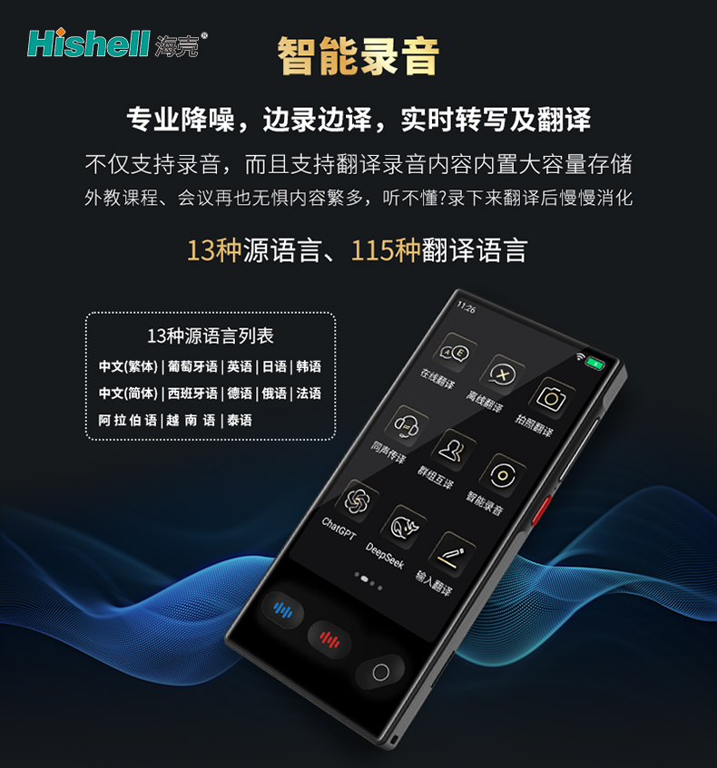 它不仅支持基础录音,还能直接翻译录音内容,且内置大容量存储,可保存大量音频与译文文件。面对内容繁杂的外教课程、国际会议,无需担心听不懂或记不全,开启录音功能后,后续可反复查看翻译文本、回听音频,慢慢消化细节,让多语言学习与工作沟通更轻松高效。