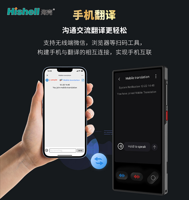 这款翻译机的手机翻译功能,让跨语言沟通交流更轻松便捷。无需复杂连接步骤,只需通过无线端的微信、浏览器等常见扫码工具,扫描翻译机上的对应二维码,就能快速构建手机与翻译机的相互连接,实现无缝互联。