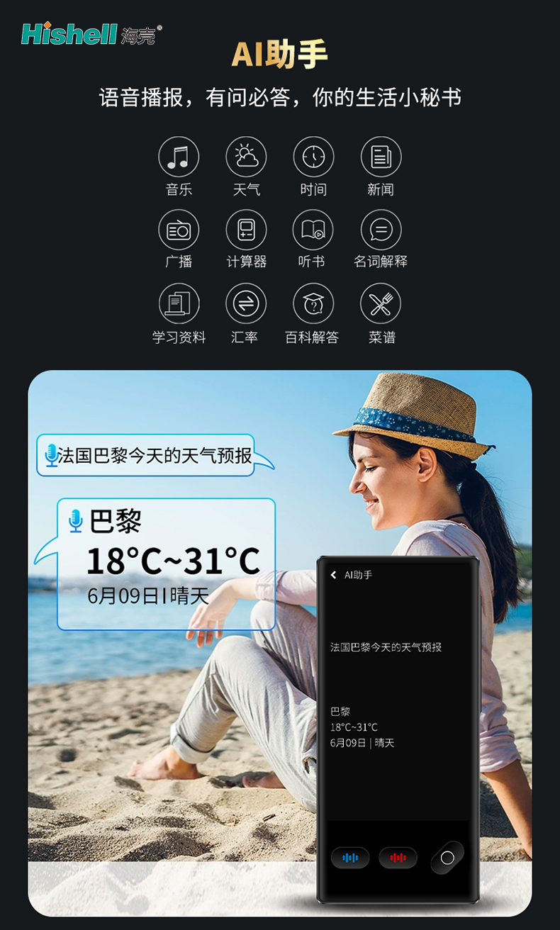 只需开口指令,它就能满足多元需求:播放音乐放松心情、查询天气规划出行、报时掌握时间节奏、推送新闻了解热点,还能收听广播、调用计算器、畅听书籍。学习上,可提供名词解释、查找学习资料;生活里,能实时汇率换算、解答百科知识、展示菜谱学做菜。无需繁琐操作,语音互动即可轻松搞定,让翻译机融入日常点滴,为生活增添便捷与高效。